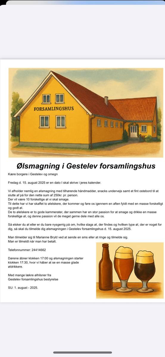 Ølsmagning i Gestelev Forsamlingshus – få en smagfuld oplevelse!