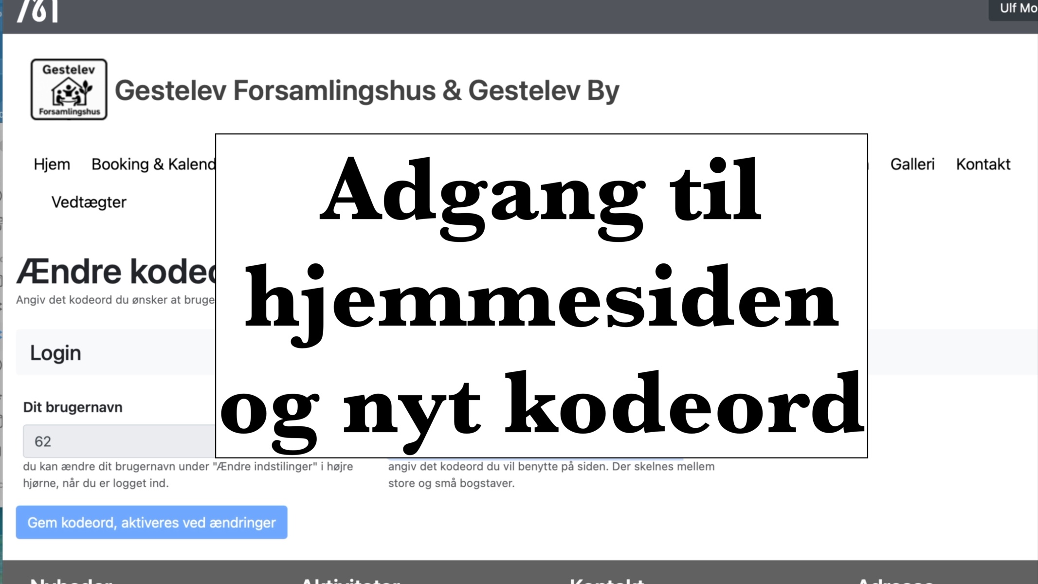 đŸŽ„ Vi har vedlagt en kort guidevideo, hvor du trin-for-trin kan se, hvordan det foregĂ„r. Nyt Kodeord og Adgang til hjemmesiden